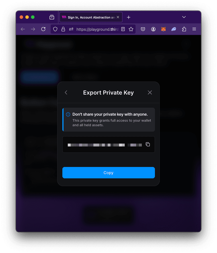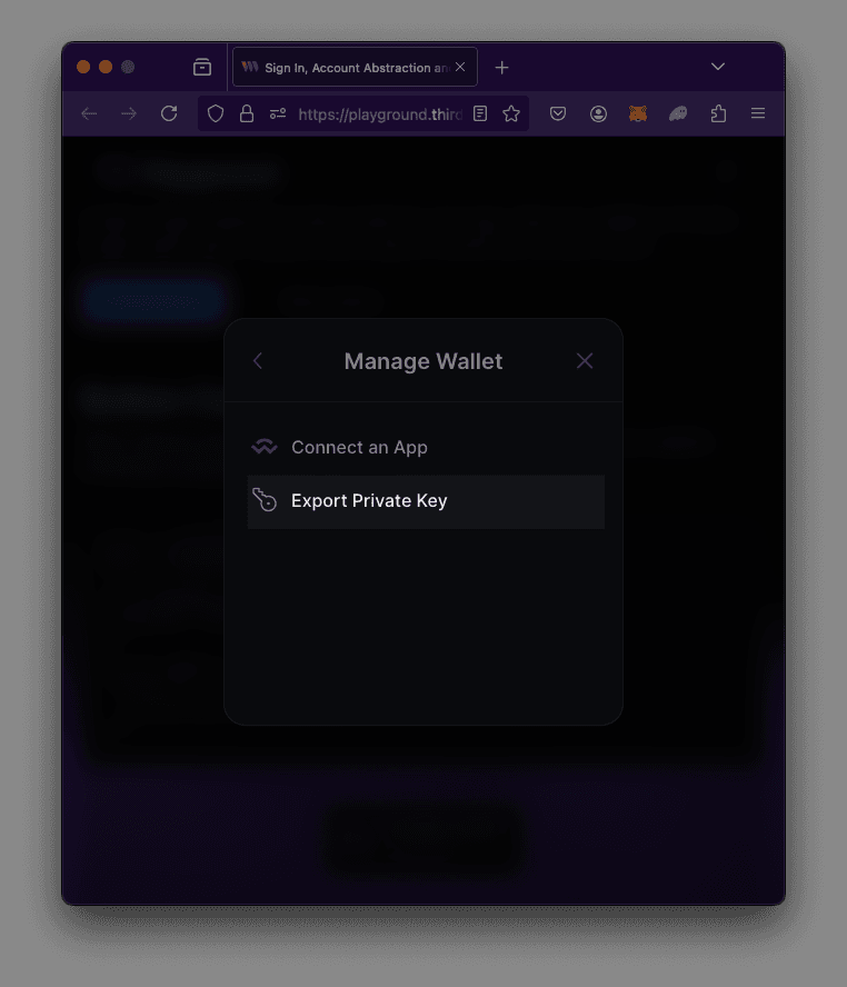 Learn how to export the private key for a thirdweb wallet using the Connect modal.